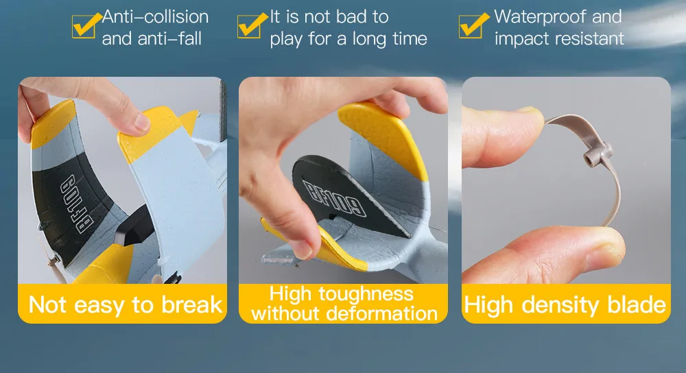 - 【DURABLE EPP MATERIAL】LIGHT WEIGHT & DURABLE EPP MATERIAL - The rc air plane is made of durable EPP foam so it will not easy to be broken from a slight crash, so you can fly this rc plane toy in a park or other outdoor you want.