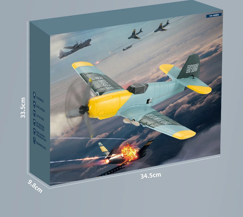 Material: Durable Plastic, Metal, and Foam Flight Time: Approximately 20 minutes State of Assembly: Almost Ready Remote Control: Yes, with a 2.4G receiver Charging Voltage: 3.7V 1S Remote Distance: Up to 150 meters Package Includes: Charger, Remote Controller, Batteries, Operating Instructions **Exhilarating Flight Experience** The Z61 BF109 RC Bomber is a masterpiece of aerial engineering, designed to captivate both young and old hobbyists alike. With its impressive flight time of approximately 20 minutes, this electric aircraft model provides ample time for enthusiasts to enjoy the thrill of soaring through the skies. The robust metal and foam construction ensures durability, while the plastic components add to the model's lightweight design, making it an ideal choice for both indoor and outdoor use. **Advanced Control and Stability** Equipped with a 4-channel controller, the Z61 offers precise control over its direction, making it a breeze to maneuver through the air. The built-in gyroscope in the 2.4G receiver enhances stability, allowing even novice pilots to enjoy a smooth flight experience. The model's efficient aerodynamic contour design, coupled with powerful motors, ensures a stable takeoff and a steady glide, making it an excellent choice for both beginners and experienced RC hobbyists. **Ready for Adventure** The Z61 RC Bomber is not just a toy; it's a gateway to adventure. Whether you're soaring through the skies at home or engaging in friendly competition with friends, this model is designed to deliver. The package includes everything you need to get started, including a charger, batteries, and a remote controller, making it a complete package for both indoor and outdoor play. With a recommended age range of 12 years and up, the Z61 is a perfect gift for children and adults alike, providing a fun and engaging hobby for all.
