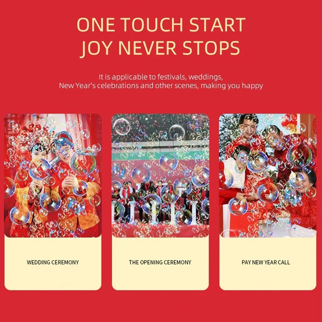 Portable firework bubble machine is a value-added bubble set, which perfectly integrates oriental firecracker culture and bubble machine, enjoy the dream bubble club, and will definitely bring you a the perfect party.