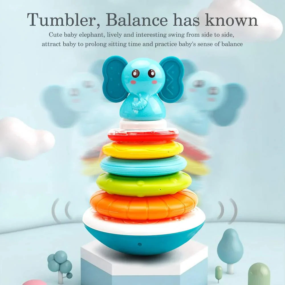 - SAFE MATERIAL: The stackable ring cup is made of 100% food grade plastic, BPA Roly poly elephant ears are soft teething rings for babies to chew, grip, shake, with smooth edges, non-toxic and good feeling