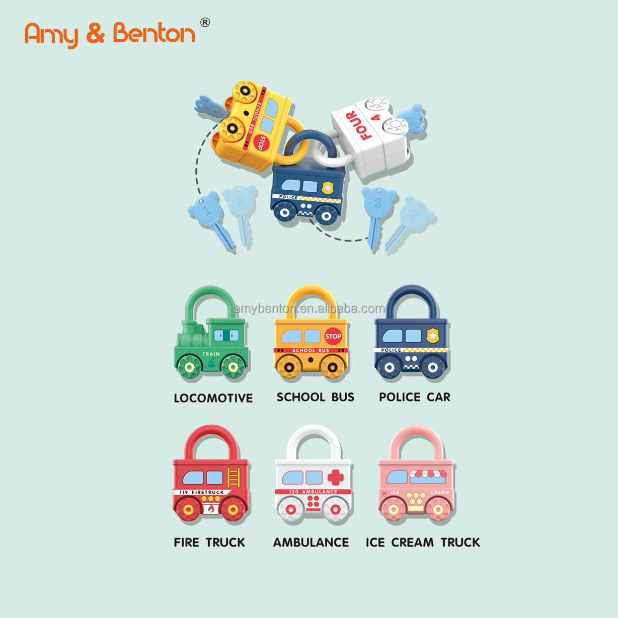 Fun and colorful Matching Lock Set for kids! Each vehicle-shaped lock opens with its matching key, helping children learn numbers, colors, and problem-solving skills while playing. Safe, educational, and perfect for toddlers 18M+.